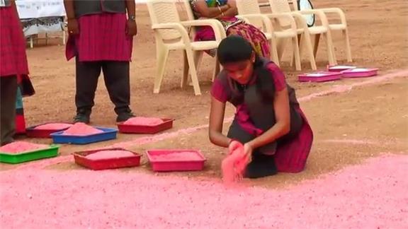 A student at Indu International School made a flag of India using salt that measures 150 square meters.