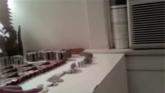 Tai Star a domino made chain using 52 American nickels and successfully made the entire chain topple with a single push.