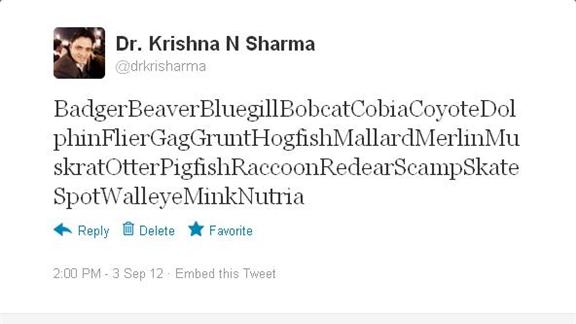 Thanks for pointing it out Joseph. I just tweeted another list of North Carolina animals ( https://twitter.com/drkrisharma/status/242539941572247552 ). I deleted the repeated name and added two more (Mink and Nutria) . So now there are 24 animals (1 more than this). But I dont know what to do now.
