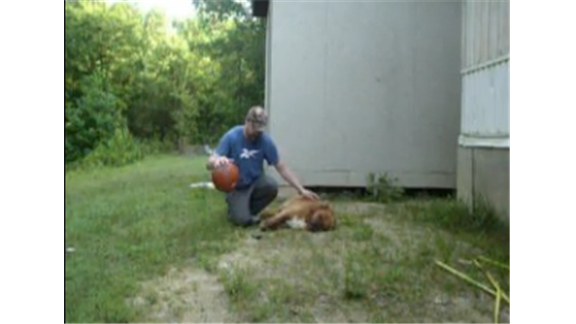 Andy Pelphry bounced a basketball 80 times in 30 seconds while petting his dog Brownie.