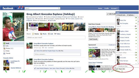 GregAlbert Esplana had 94 friends online on Facebook Chat at the same time.