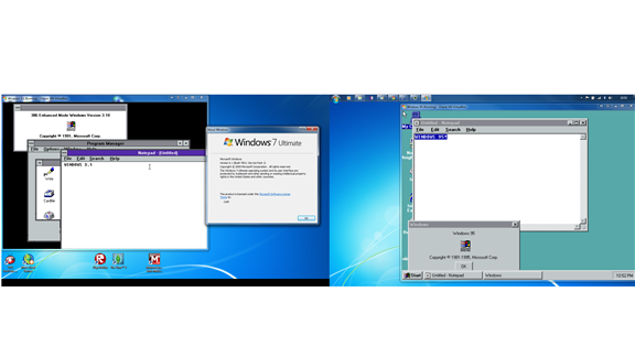 DOS. 6.22 WINDOWS 3.1 WINDOWS 95 WINDOWS 98 WINDOWS ME WINDOWS VISTA WINDOWS XP WINDOWS 8 PRO WINDOWS 7 AND FINALLY WINDOWS SERVER 2012