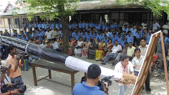 Sujit Das built a paintbrush measuring 28 feet in length, 4.40 feet in breadth, and 22 kilograms in weight.