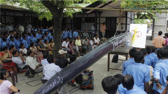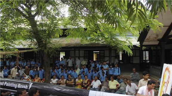 He used the brush to paint portraits of Mahatma Gandhi, Sahid Bhagat Singh, and Bishna Prasad Rabha at Govt. Boys High School in Nagaon, India.
