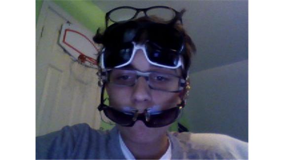 Alex Bloom wore seven pairs of glasses on his face at once.