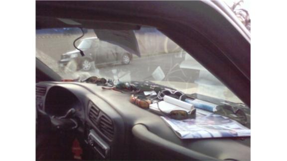 Raymond Nichols fit 12 pairs of sunglasses on the dashboard of his car.