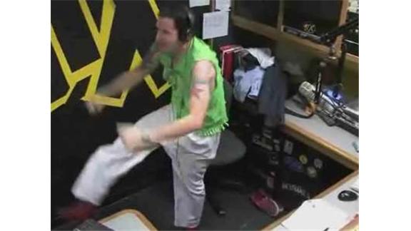 91X Morning Show host Mat Diablo uses all his energy en route to breaking the world record for most panama kicks in one minute (92). Diablo beat Ryan Moulian’s existing record by nine kicks.