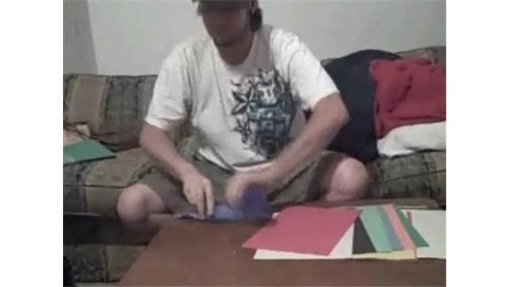 Russel Stokely constructs and launches seven paper airplanes in one minute, a new world record. He used standard construction paper to build the planes.