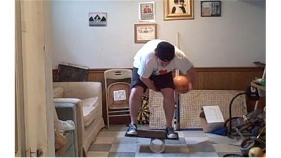 Brian Pankey completed 42 passes of a bowling ball through his legs while on a rola bola.