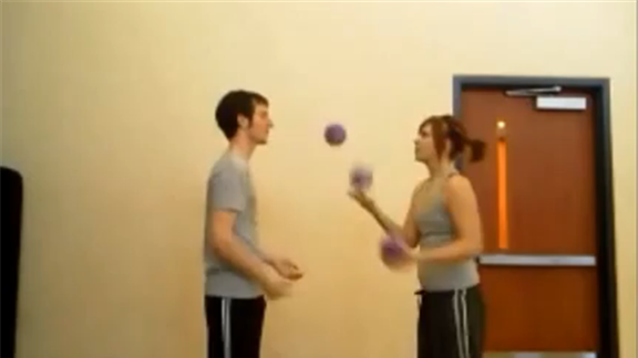 Most Patterns Stolen Between A Guy And A Girl Juggling Three Two-Pound Balls