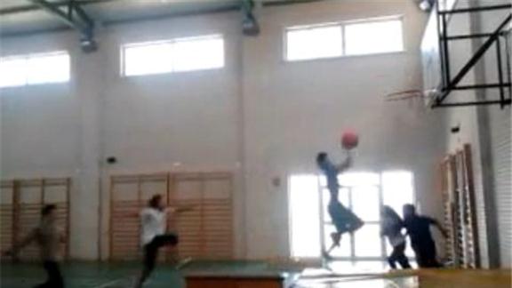 Kevin Santiago and four of his friends bounced a basketball on a backboard five consecutive times.