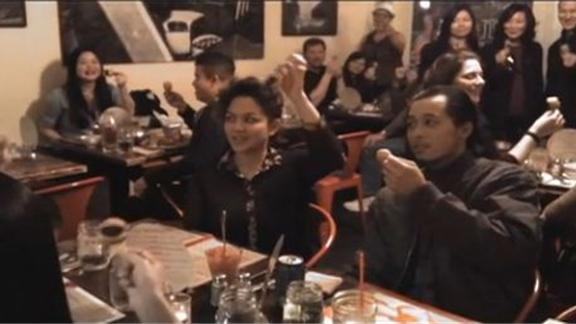 Greg K. led 36 people in simultaneously eating mini-donut burgers. They set the record as part of Straw's 3rd anniversary. Straw is a carnival-inspired restaurant and caterer located in San Francisco, California.
