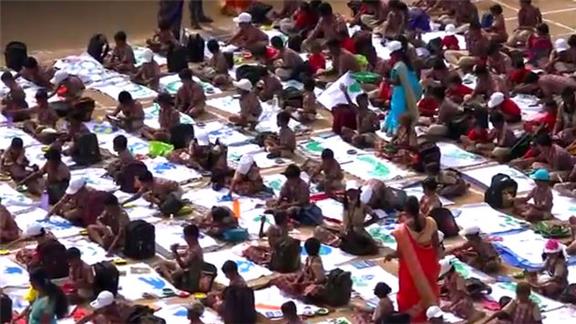 1,106 students at Bharathiyar Matriculation School in Salem, India participated in a group fingerprint painting.