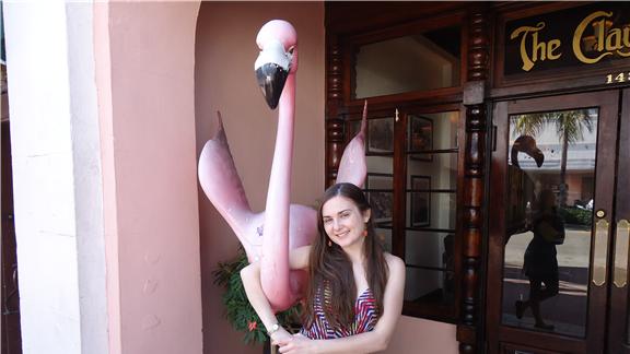 Emily Miethner hugged a flamingo statue.
