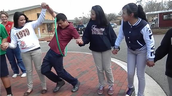 Brian J. led 593 students from Crooked Oak Public Schools in Oklahoma City, Oklahoma in a hula hoop game.