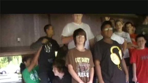Alex Cunningham and 19 of his friends all fit onto a picnic table at once.