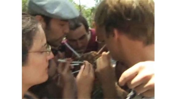 The group performed the feat as part of the Quest for Immortality mystery bus tour[], organized by Jason Eppink and Matt Green and curated by Flux Factory.