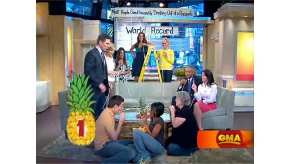 Bill Weir and nine members of the Good Morning America staff drank out of a pineapple at once. They beat the previous record by one person.