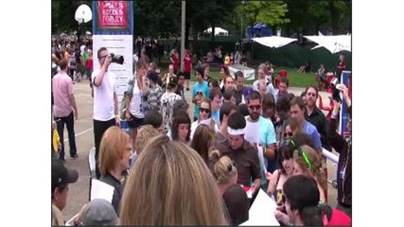 The feat was achieved on July, 18, 2009 at the Pitchfork Music Festival[] in Chicago. Representatives from URDB.org were present to document the record.
