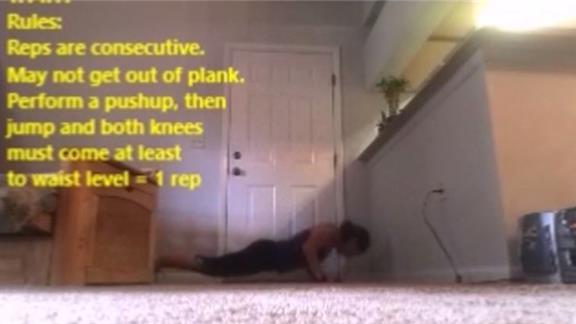 - must perform a push-up followed by a plank jump where knees come to the level of the waist