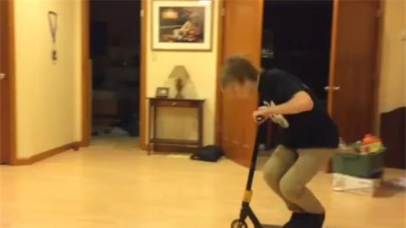 Bryson R. performed a tail whip on a scooter and eat a banana in 28.48 seconds.
