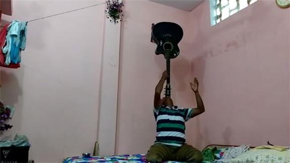 Suresh Gaur picked a guitar for two minutes, 16.44 seconds while balancing it on his chin.