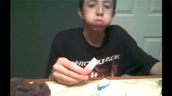 Dylan R. chewed 86 pieces of gum at once.