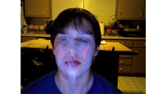 It does become very difficult to assess whether pieces are touching skin or not, but then 600 pieces of tape... I'm interested to see someone with 100,000 pieces - how long until it's too dangerous to breath or too heavy for the neck to support the weight... in this case, what counts as "face"? if it starts creeping over the head...