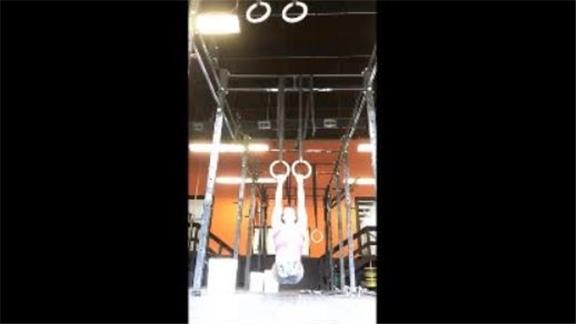 Alicia Weber performed a pike hold for one minute, 12.51 seconds hanging from men's gymnastics still rings.