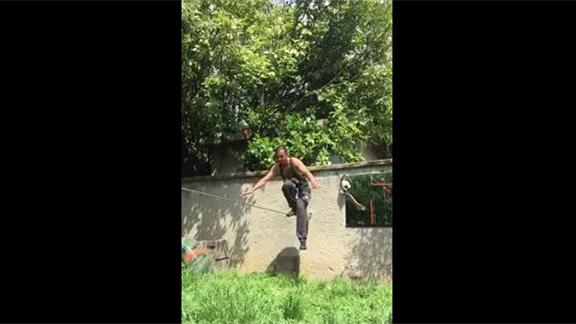 Record Setter performed 20 pistol squats while balancing on an iron rope in one minute.