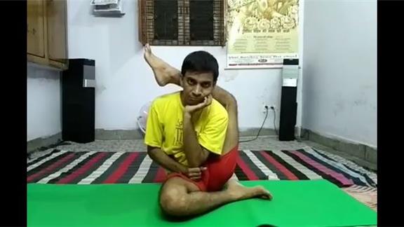 Krishan Kumar held his foot behind his head for eight minutes, 37.00 seconds.
