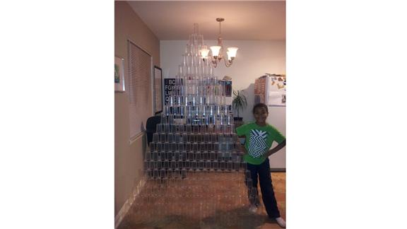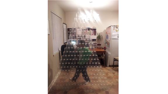 Julie W. built a plastic cup triangle using 231 cups.