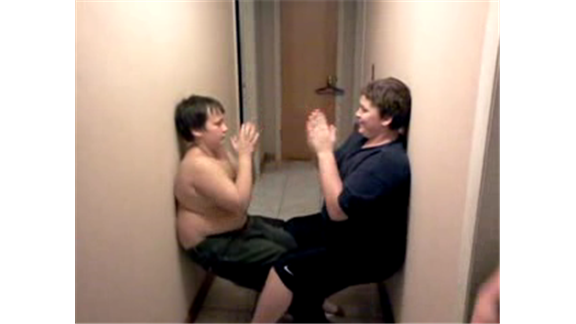 Austin and Aaron Carlisle played patty-cake while wall sitting for 48.57 seconds.