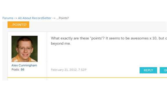 Alex Cunningham posted on the RecordSetter forum 86 times.
