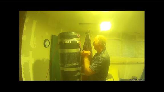 Norman B. punched a punching bag 215 times in 15 seconds.