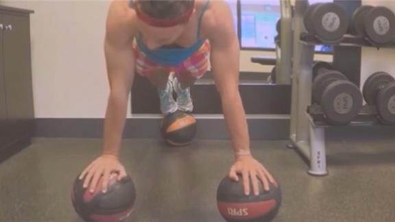 - must stay balanced on three 22-cm diameter medicine balls