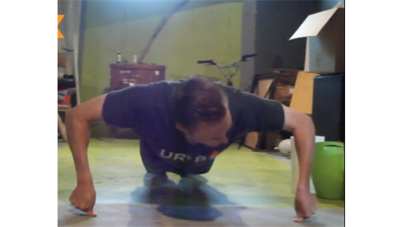 Darryl Learie completed 14 consecutive push-ups using just his thumbs on a concrete floor.