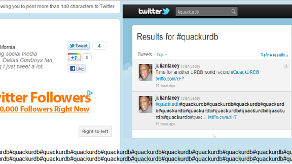 Julian Lacey collected 1,399 "Quacks" tweeted in one hour.