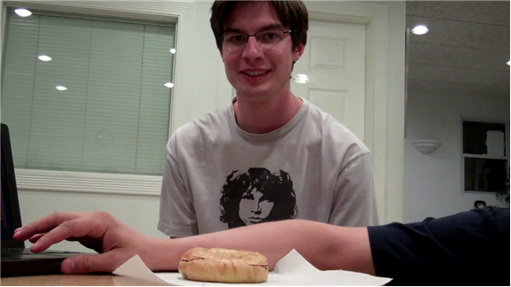 Tyler Edens asked seven questions to a jalapeno-cheddar bagel in 10 seconds.