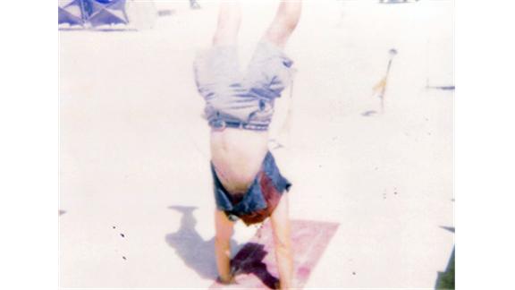 Eric S. recited the English alphabet three times in a row while performing a handstand.