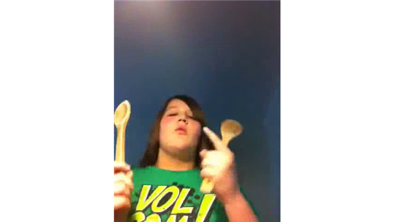 Stefanie Ward recited all 50 [United States][] in alphabetical order in 16.75 seconds while hitting her head with two wooden spoons.