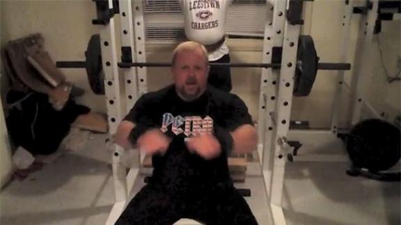 Clint P. completed 17 reps bench pressing a 285-pound barbell. His bodyweight was 233 pounds during the attempt.