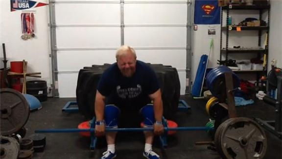 Clint Poore completed four reps deadlifting a 600-pound giant tire.