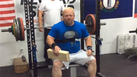 Clint Poore performed four reps two-board bench pressing a 440-pound barbell.