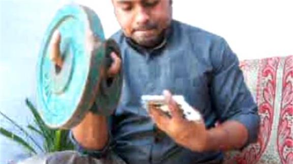 Kamal Aslam performed 37 Revolution card cuts in one minute while holding a 5-pound exercise plate on his pinky finger and a 15-pound exercise plate on his index finger.