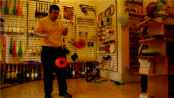 Raphael Harris made 78 rotations in one minute using two diabolos. The record was set at an event in the Dube Juggling showroom in New York City.