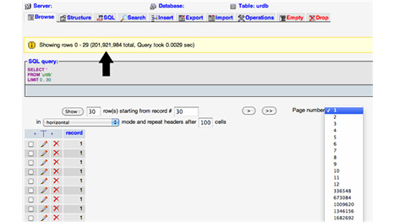 Heya coreyh, this is a MySQL server(5.1.26-rc) hosted at mediatemple.net. This perticular database is only used for this as an experiment. It's only populated by 1's.