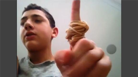 Jordan L. put on 100 rubber bands on his index finger.