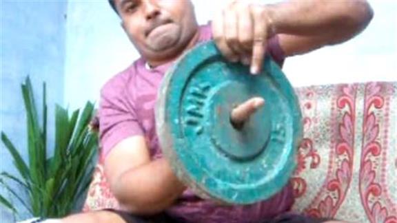 Kamal Aslam performed 11 Saber's Rollback card cuts in 30 seconds while holding 20-pound exercise plates on his index finger.