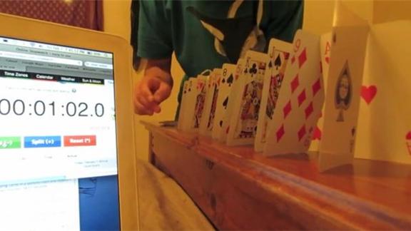 Fastest Time To Set Up And Topple A Playing Card Domino Chain
